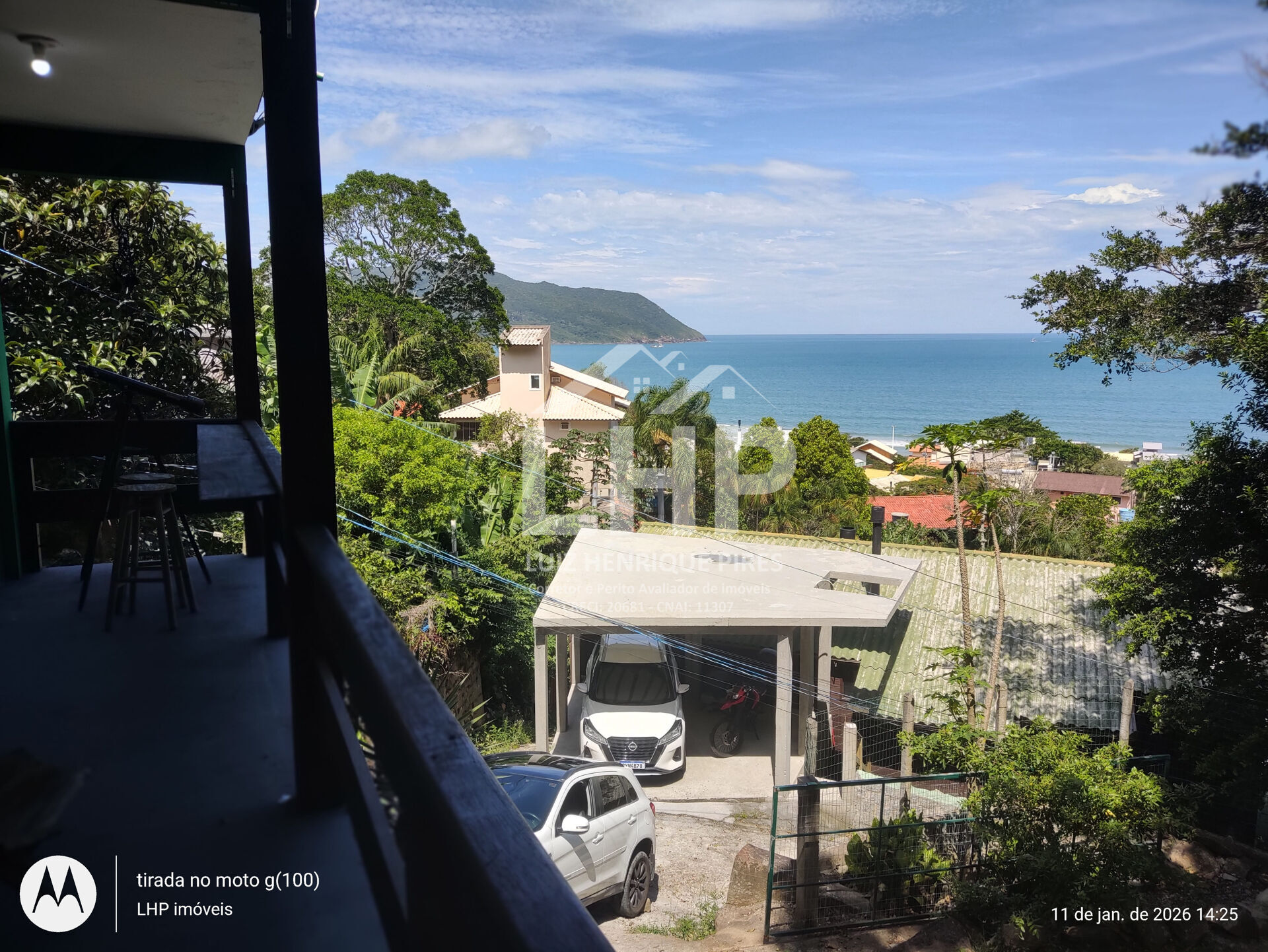 Imóvel com linda vista permanente para o mar, com 2 dormitórios, banheiro social, área de serviço, cozinha com churrasqueira, fogão a lenha, e fogão a gás, conjuga com a sala, varanda com linda vista permanente para o mar.