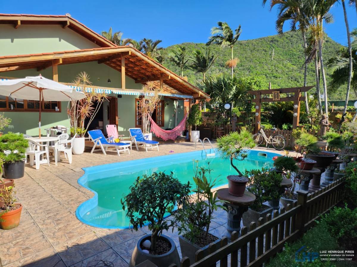 Casa no bairro Armação do Pântano Sul em Florianópolis - Casa com 4 dormitórios (sendo duas suítes), cozinha com móveis planejados, área de serviços, sala de está/TV, varanda, lareira, lavabo e sótão com espaço aproveitável. Edícula com garagem, churrasqueira, suíte e lavabo. Terreno totalmente murado, com um belo jardim, com piscina, deck e decoração, localizado em rua sem saída a +- 200 m da praia da Armação e praia do Matadeiro. Bairro tranquilo contando com as belezas das Praias da Armação e Matadeiro, além de ter também a Lagoa do Peri e os barcos que levam turistas para a Ilha do Campeche (Caribe do Sul do Brasil). A Armação esta localizado no Sul da Ilha de Florianópolis em meio aos morros da Mata Atlântica, com linda paisagem natural e próximo ao aeroporto. ACEITA FINANCIAMENTO BANCÁRIO.
