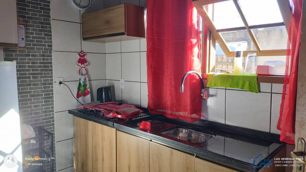 . Terreno com 228,00 m², plano, totalmente murado, contendo uma casa de alvenaria, com cozinha, banheiro, 2 dormitórios, sala de TV, área de serviço e garagem com churrasqueira.